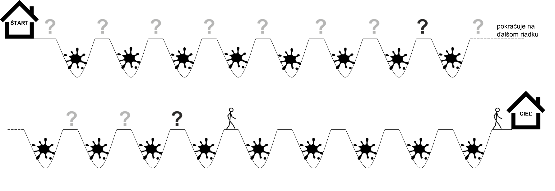 Aby ste lepšie pochopili, čo v tejto úlohe treba robiť, skúste si ju vyriešiť na konkrétnom príklade z obrázku nižšie. Za správne určenie pozícií lemingov v tomto obrázku môžete získať až 2 body.