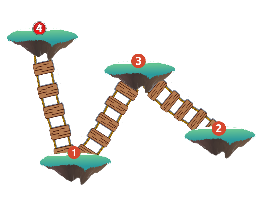 Ak by prvý úsek išiel dole, druhý hore a tretí opäť dole, výška platforiem (v metroch) by mohla byť 4, 1, 3, 2. Rovnako dobré by však bolo aj riešenie 2, 1, 4, 3.