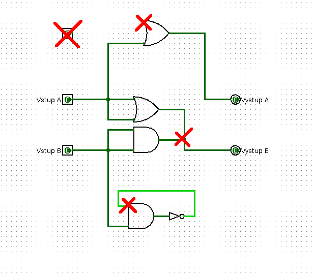 - Hradlá, na ktorých niektorý vstup nie je nič pripojené. Výstupy z hradiel nemusia byť pripojené na nič.